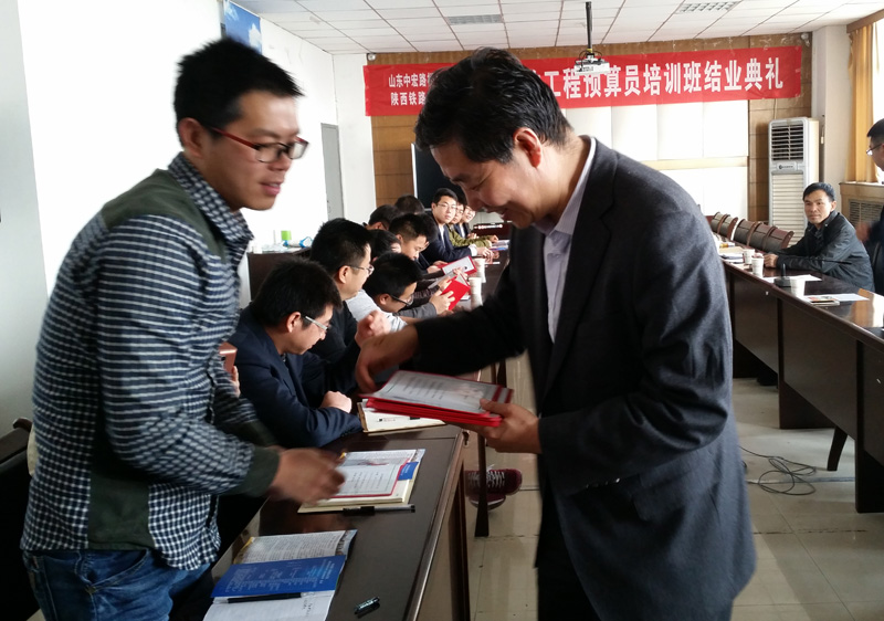 4月25日上午,山东中宏路桥建设有限公司市政工程预算员培训班结业典礼,在陕铁院临渭校区会议室举行。学院副院长焦胜军、山东中宏路桥公司副总经理兼总工李明雨、西安分公司经理吴乐康、道桥系和继续教育部负责人及全体培训班学员参加了典礼。