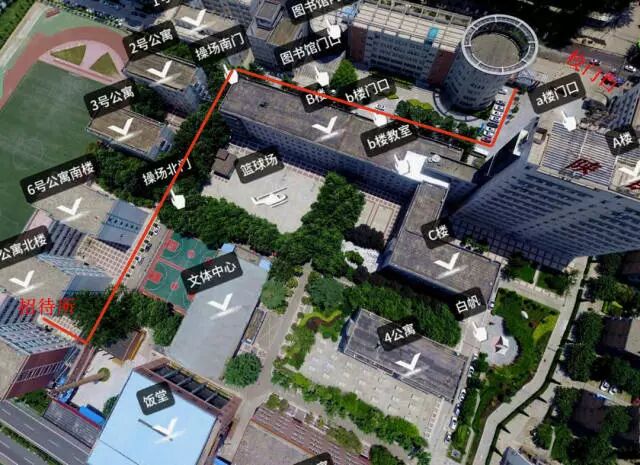 到达校门口后,右转,路过图书馆,再次左转。一路直走,经过洗浴中心,到达招待所。招待所位于学院东北角,校园餐厅的东面。在紧张繁忙的培训之余,相信静谧舒适的休息环境、整洁温馨的客房以及整洁便利的就餐地点,肯定会为入住人员的培训和工作带来方便。